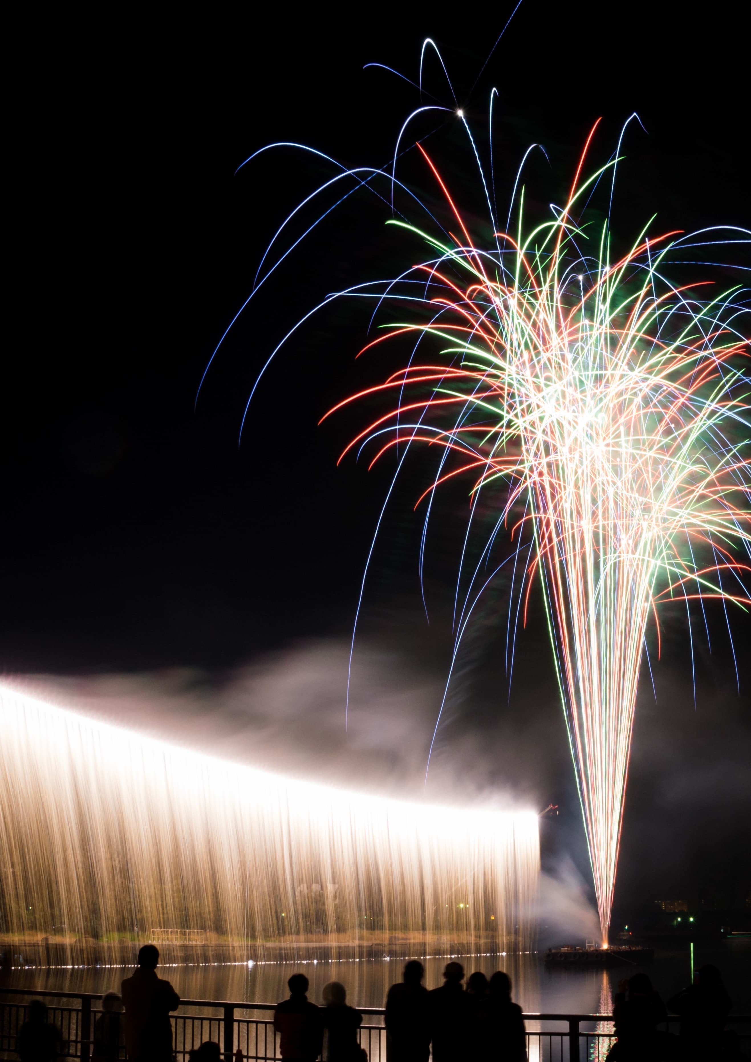 海に浮かぶ台船より打ち上げています。また150mにおよぶナイアガラも見どころの一つです。